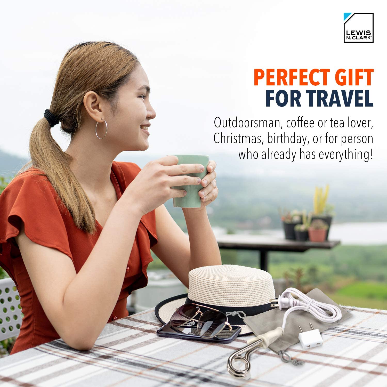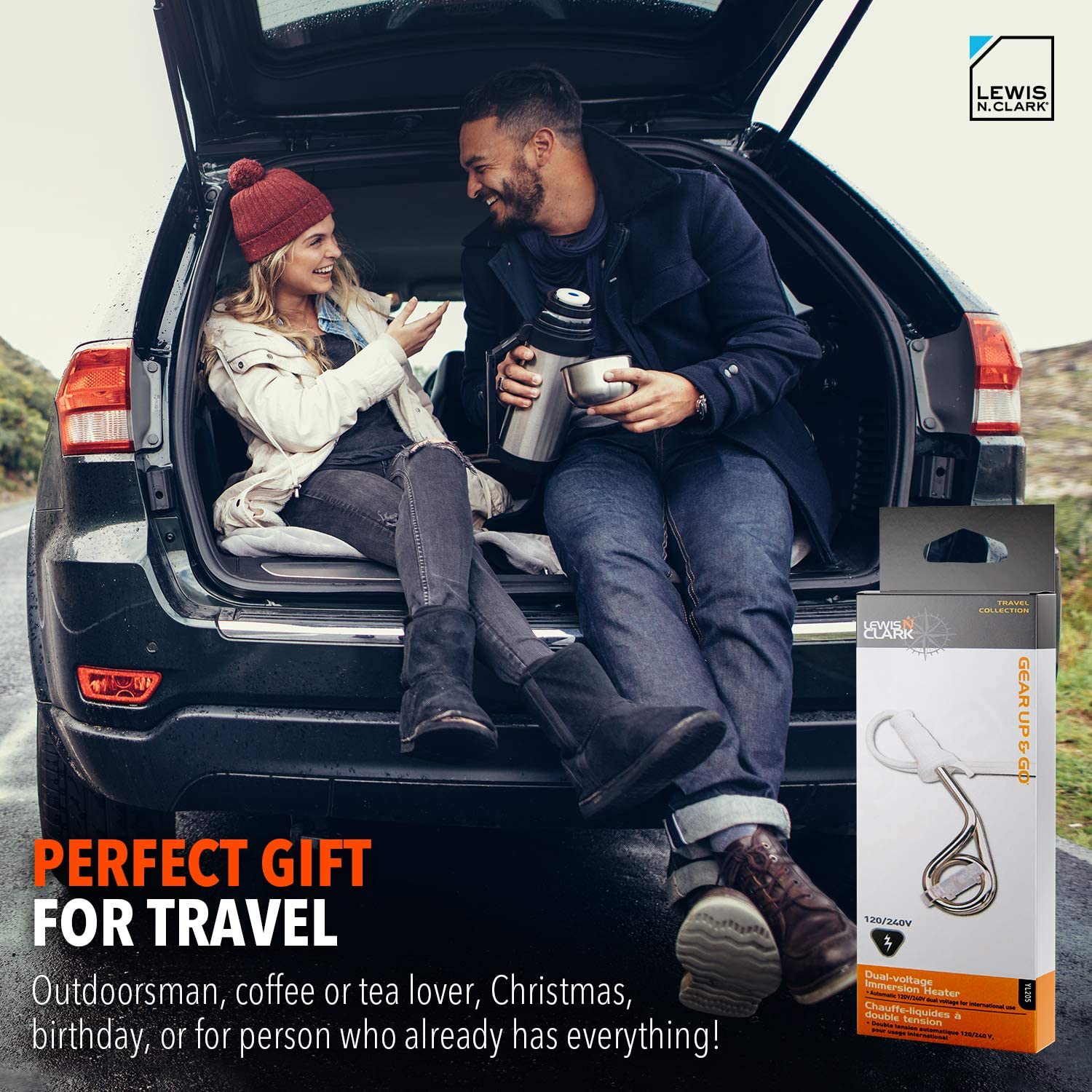 Lewis N. Portable Immersion Water Heater + Electric Kettle Replacement for Coffee, Tea + Hot Chocolate, Camping, Travel + Office with Travel Adapter, White, 120/240v