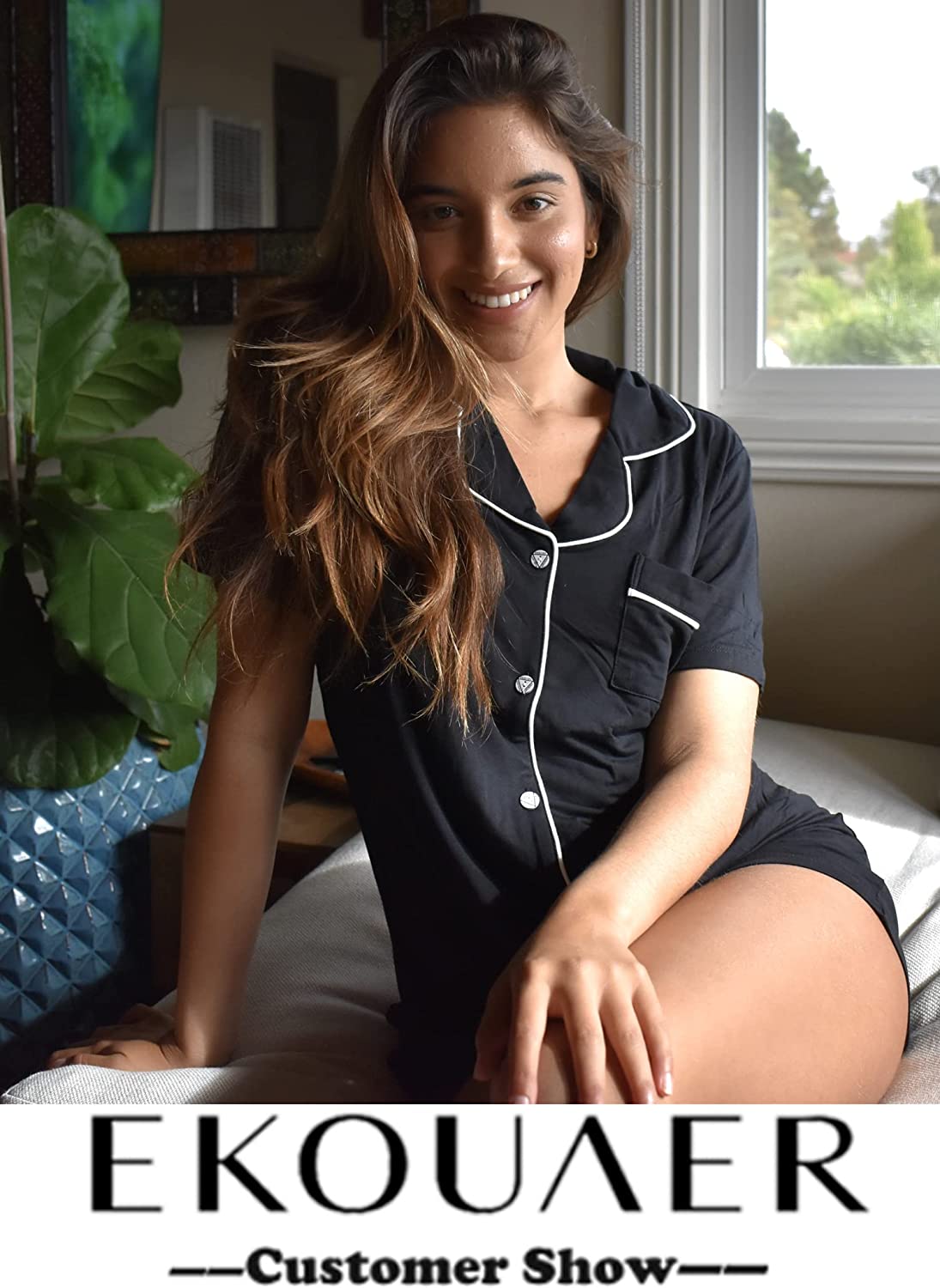 Ekouaer Pajamas Women's Short Sleeve Pajamas Buttoned Homewear Soft Pajama Shorts Set $171.0 |