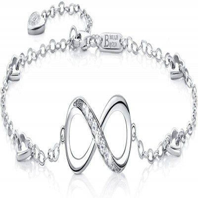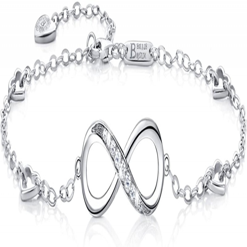 Billie Bijoux Women's 925 Sterling Silver Infinity Anklet Bracelet Endless Love Symbol Charm Adjustable Large Bracelet Women's Mother's Day Gift