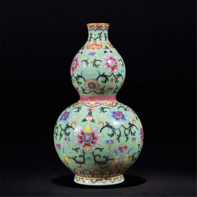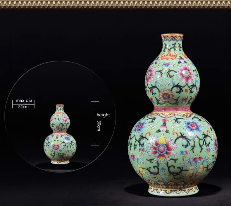 ZLXDP Chinese Style Antique Green Ceramic Vase Collection Jingdezhen Porcelain Gourd Decorative Vase