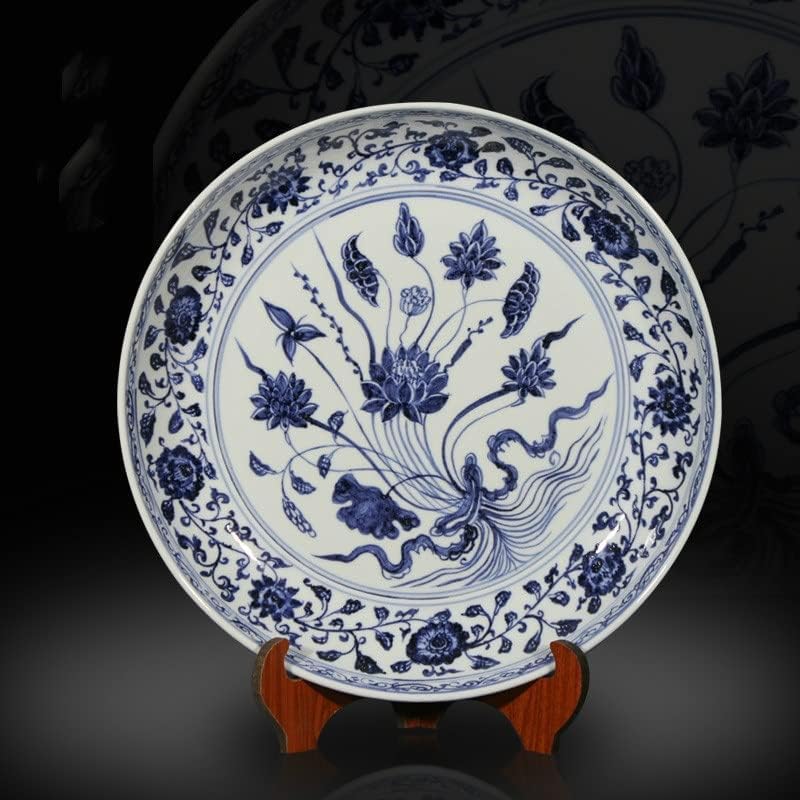 LIUYUNQI 16 Antique Classic Hand-Painted Cyanotype Decorative Round Ceramic Plate