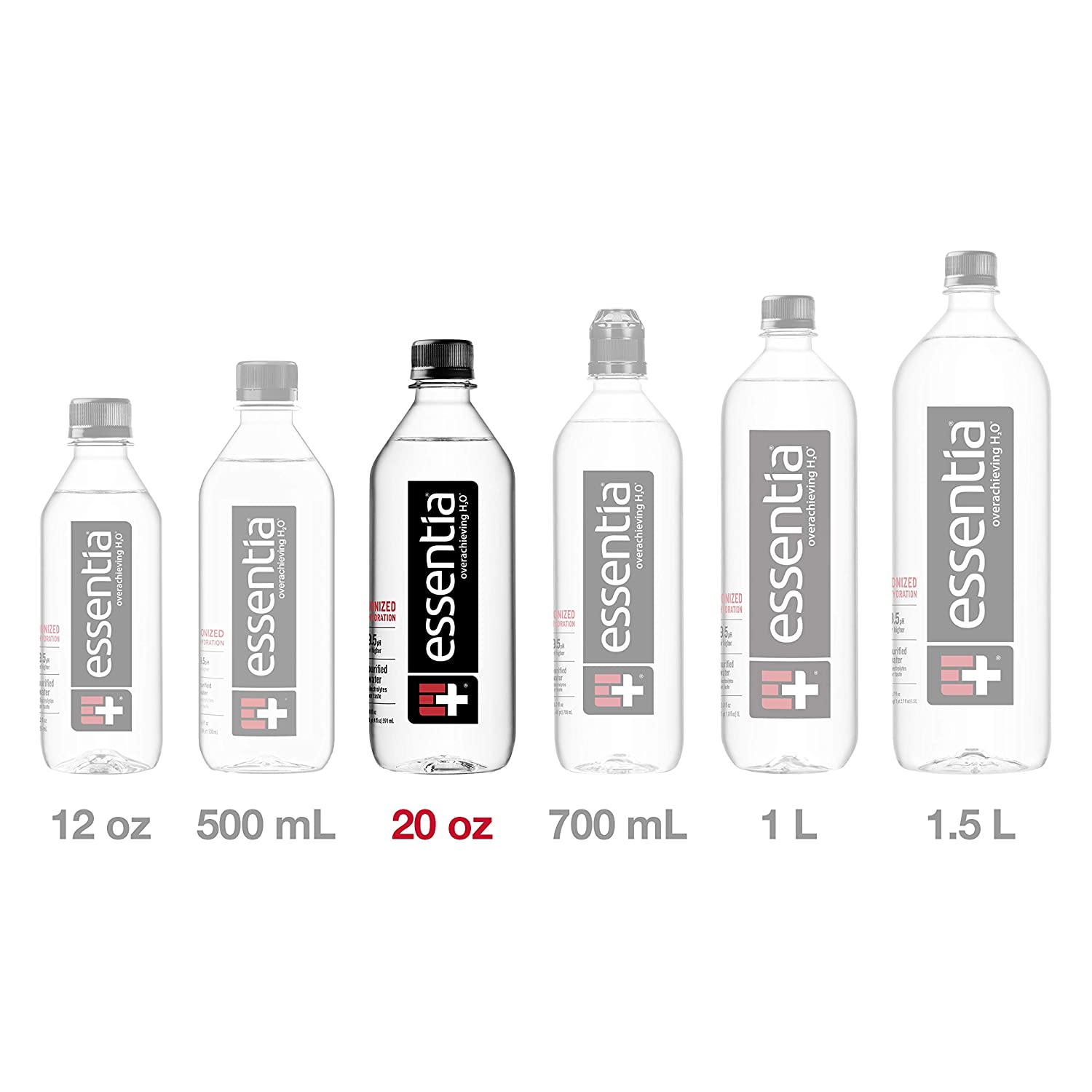 Essentia Bottled Water, Ionized Alkaline; 99.9% Pure, Infused with Electrolytes, pH 9.5 or Higher, Clean, Smooth Taste, 20 Fluid Ounces (Pack of 24)