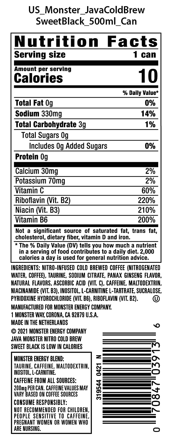 Monster Energy Java Monster Mean Bean, Coffee + Energy Drink, 15 Fluid Ounces (12 Pack)