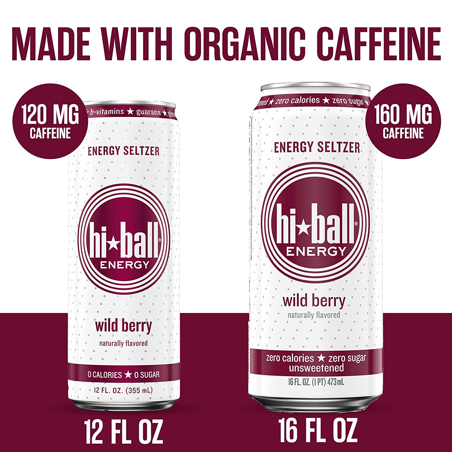 Hiball Energy Soda, Caffeinated Soda with Vitamin B12 and Vitamin B6, Sugar-Free (8-pack of 16 fluid ounces), Wild Berry
