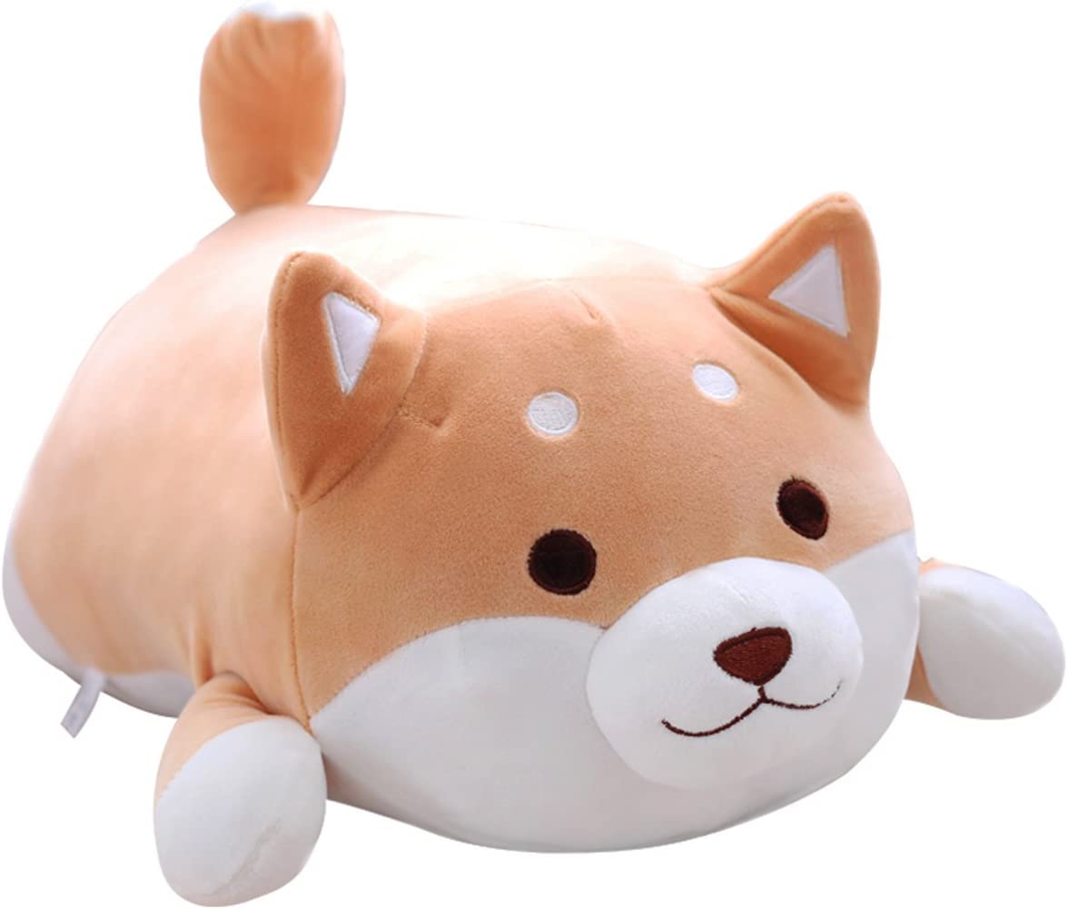 Shiba Inu Dog Plush Pillow, Cute Akita Corgi Stuffed Animal Doll Toy Gift Valentine's Day Gift, Christmas, Upholstered, Brown Round Eyes, 15 Inch