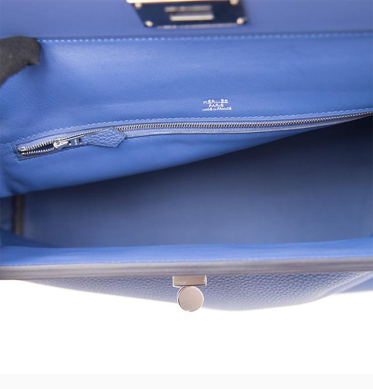 HERMES/HERMÈS Ladies Blue Cowhide Metallic Silver Buckle Handbag Tote Handbag Clutch Women's Bag 242435CMAATG - Teem