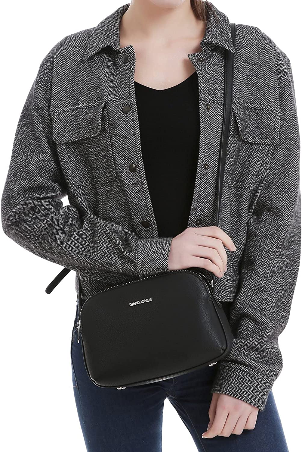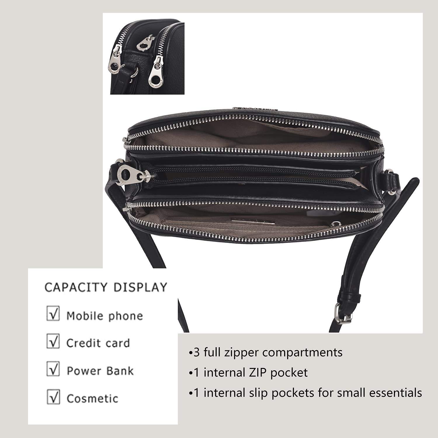 DAVIDJONES 3 Zip Porkets Compartment Crossbody Bag, Women's Faux Leather Shoulder Bag, Small Functional Travel Purse