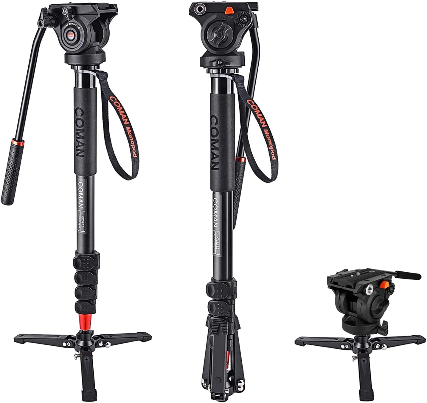 Monopod, COMAN KX3232 73.2 Inch Professional Monopod Tripod Lightweight Aluminum Telescopic Camera Monopod with Legs and Head Hydraulic Head for DSLR Cameras