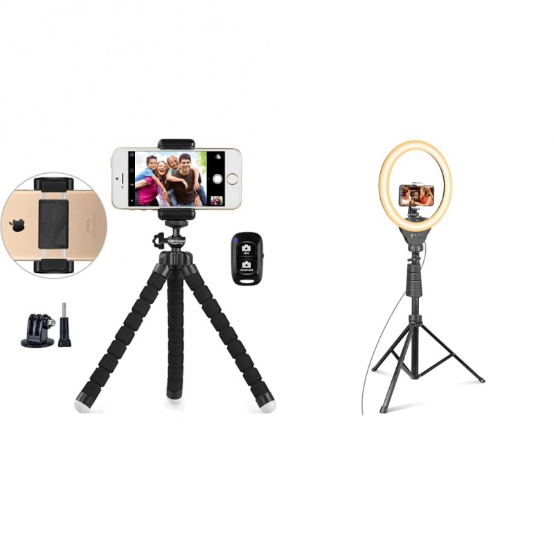 Cell Phone Tripod, UBeesize Portable Adjustable Camera Mount with Wireless Remote and Universal Clip, Compatible with Cell Phone, Sports Camera